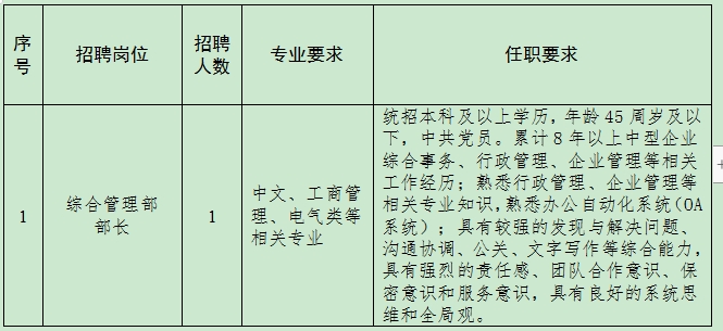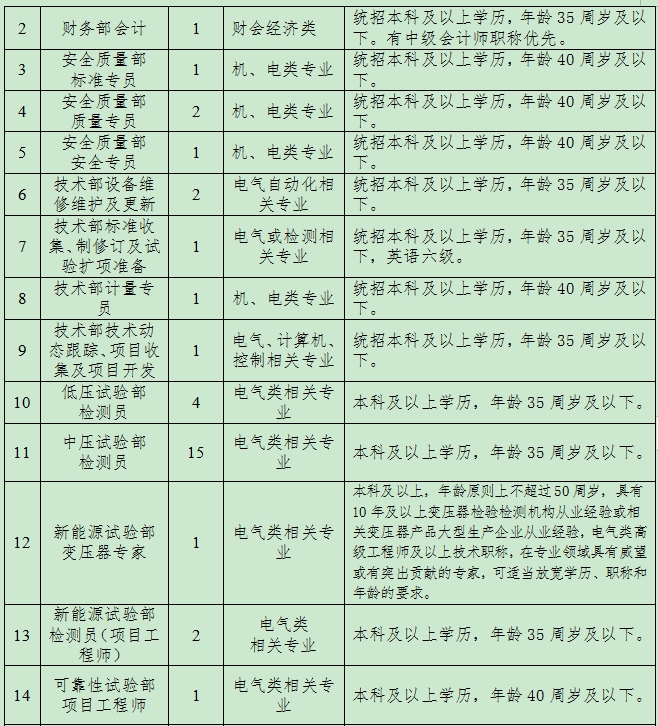 根據公司經營發展需要,現面向社會招聘行政管理、財務、安全質量、變壓器專家、市場管理、檢測專業人才,有關事項公告如下: